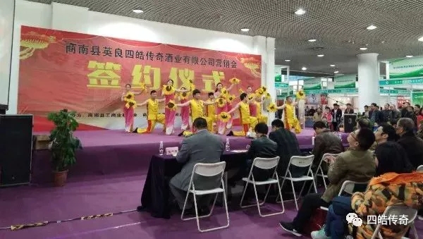 11月12日,風和日麗,下午13點30分,稍顯安靜的西安曲江國際會展中心A館突然熱鬧起來了。歌聲、尖叫聲、歡呼聲、掌聲響起一片,參展商參觀的客商紛紛駐足觀看,原來是商南劇團為四皓酒業營銷會簽約儀式暖場的節目正式開演了。